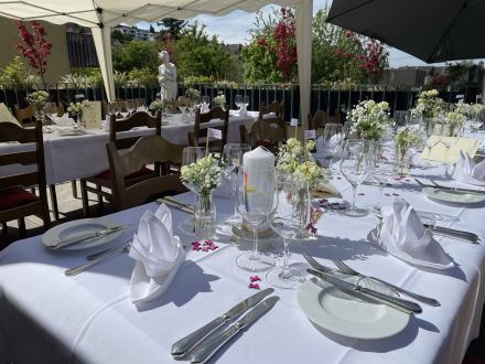 Auf unserer wetterfesten Terrasse können Sie auch bei Regen entspannt sitzen bleiben und gemütliche Stunden geniessen. Einem feinen Apéro in der Lounge und einem feinen Essen an einem lauschigen Sommerabend steht nichts im Wege.